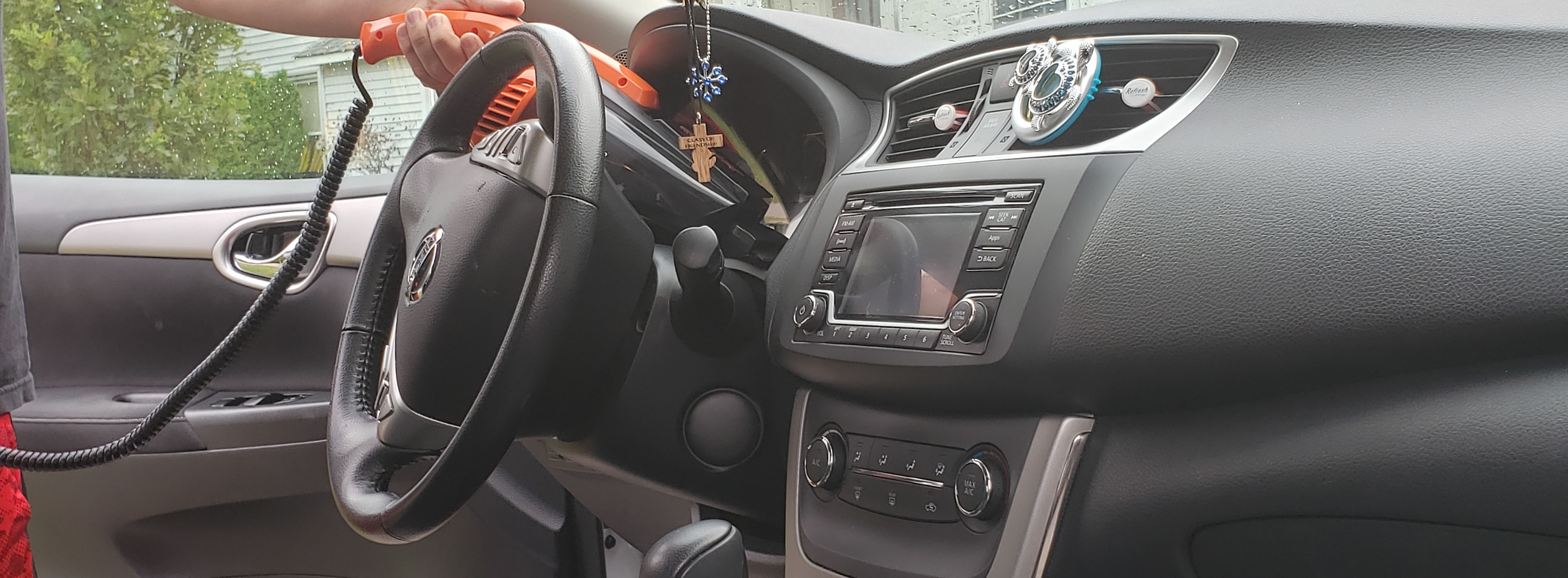 Dust and clean all vents, cup holders, door storage areas and under seats.